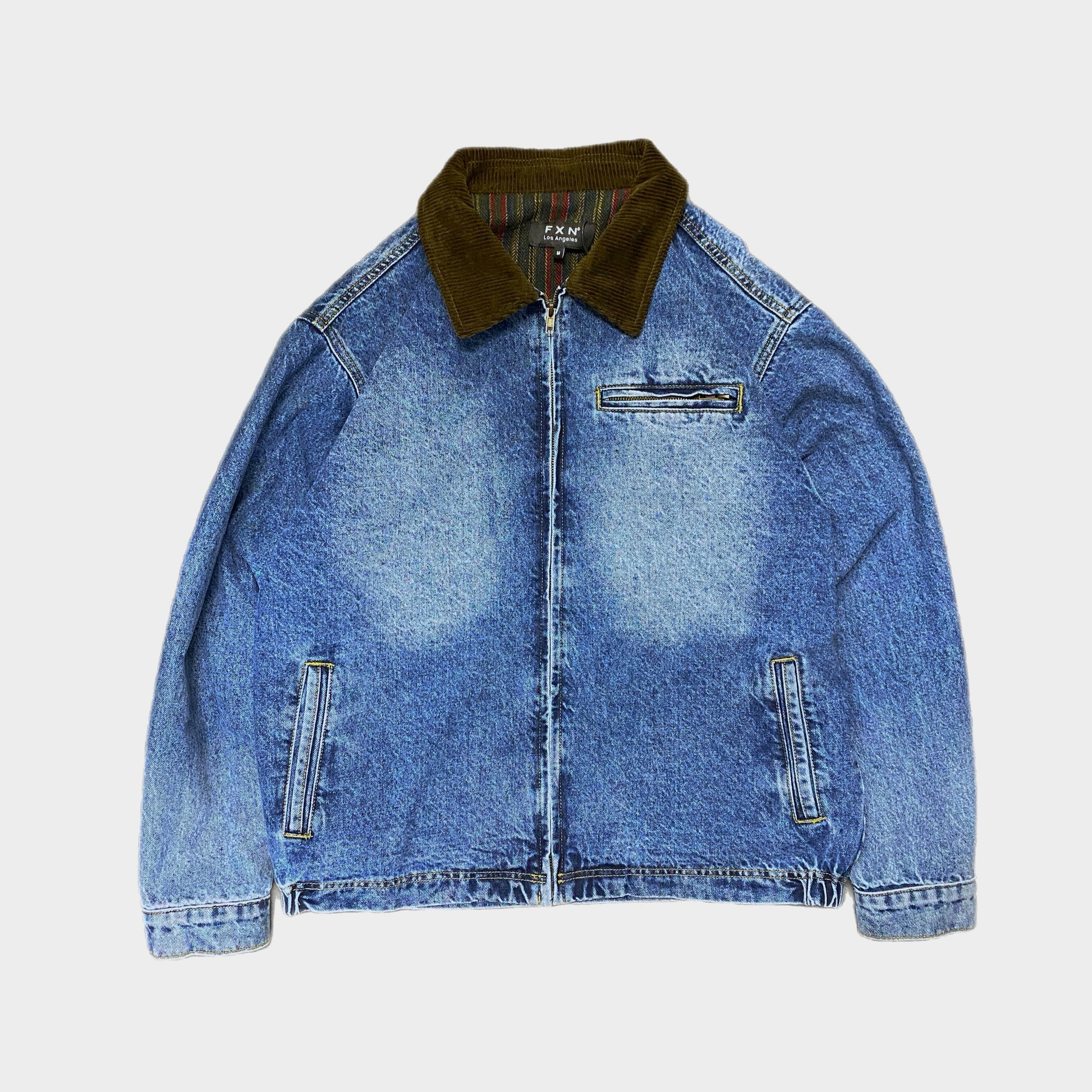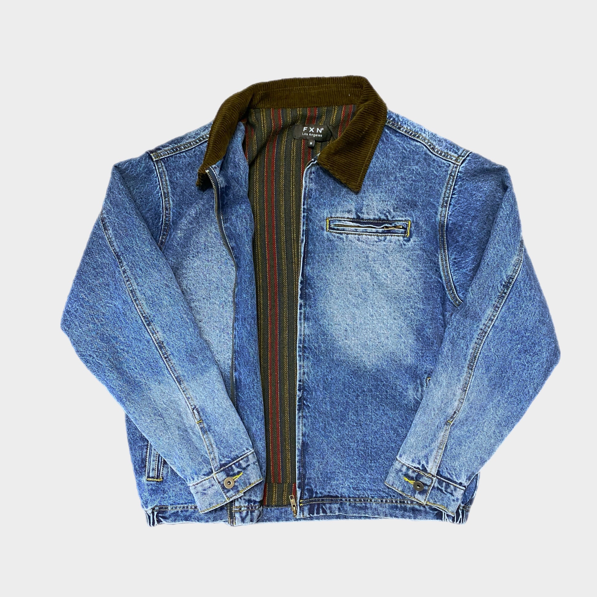 Our Corduroy Collar Denim Jacket is hugs you. With a wool lining and contrast corduroy collar -- it doesn't get any more premium that this. Made of 12 oz denim, this jacket is sturdy and comfortable with an elastic waist band. This is a high end workwear piece for those that know.