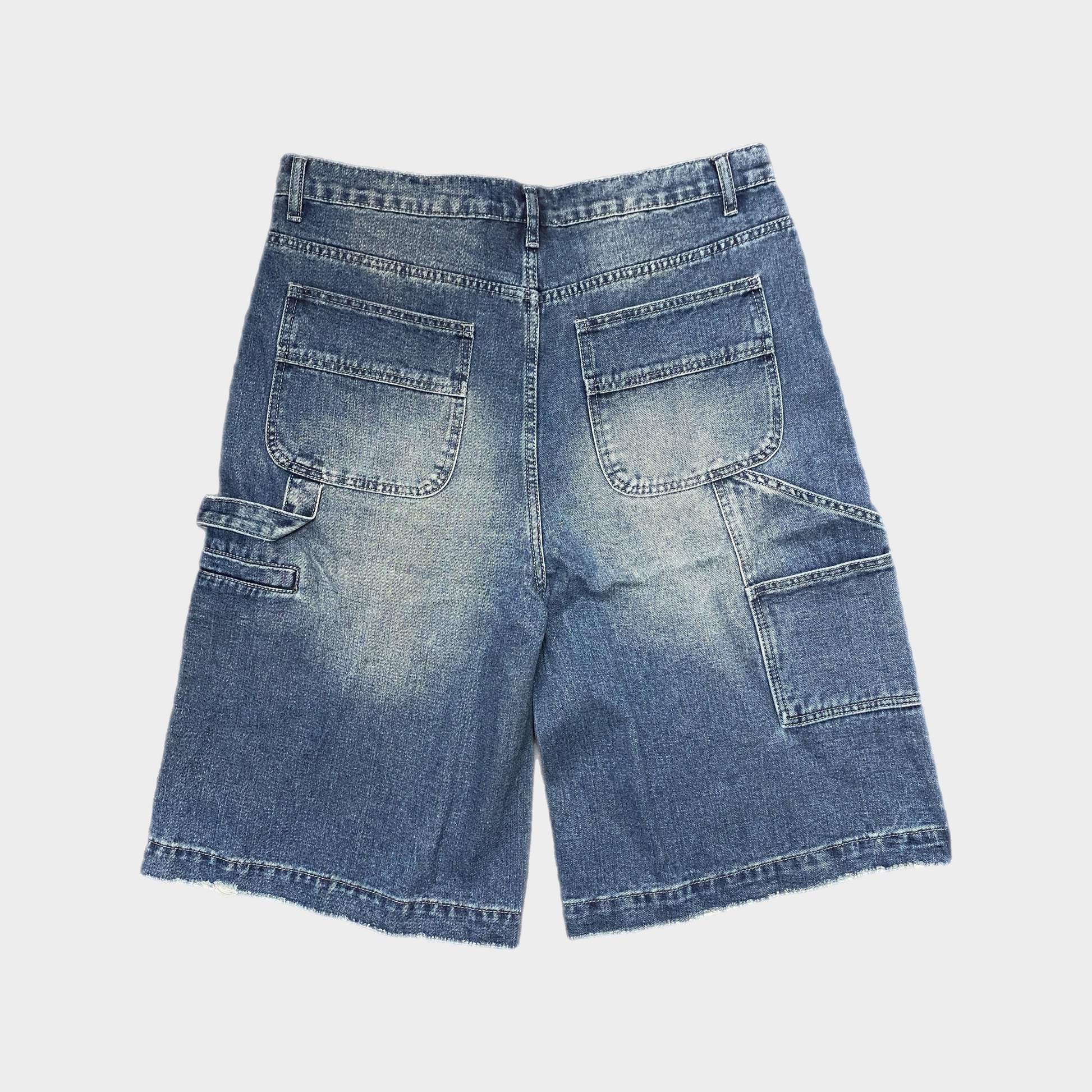 Our Extra Baggy Carpenter shorts feature natural whisking, sun fadeing, distressing on front and back of shorts. Easy banger to embroider or sew on patches. Fit is extra baggy and a bit longer, intentionally.