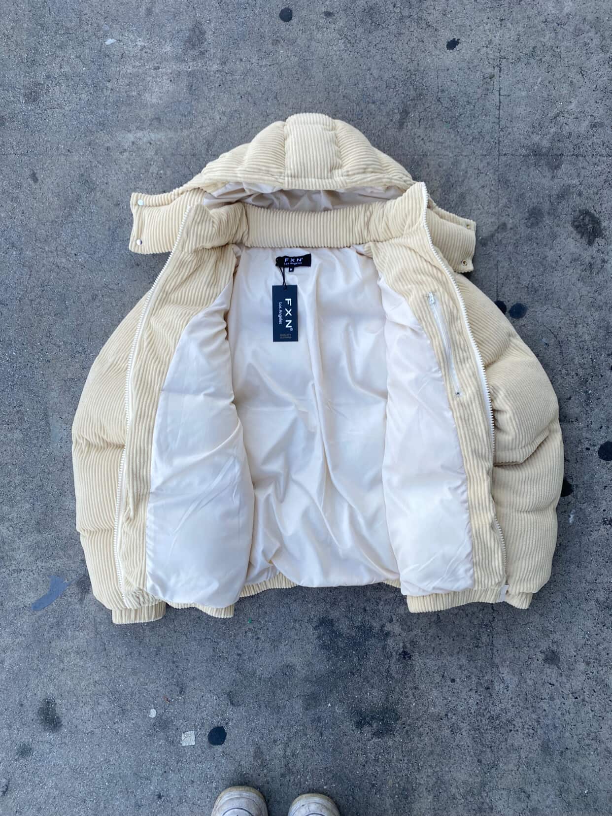 HOODED CORDUROY PUFF JACKET - BEIGE