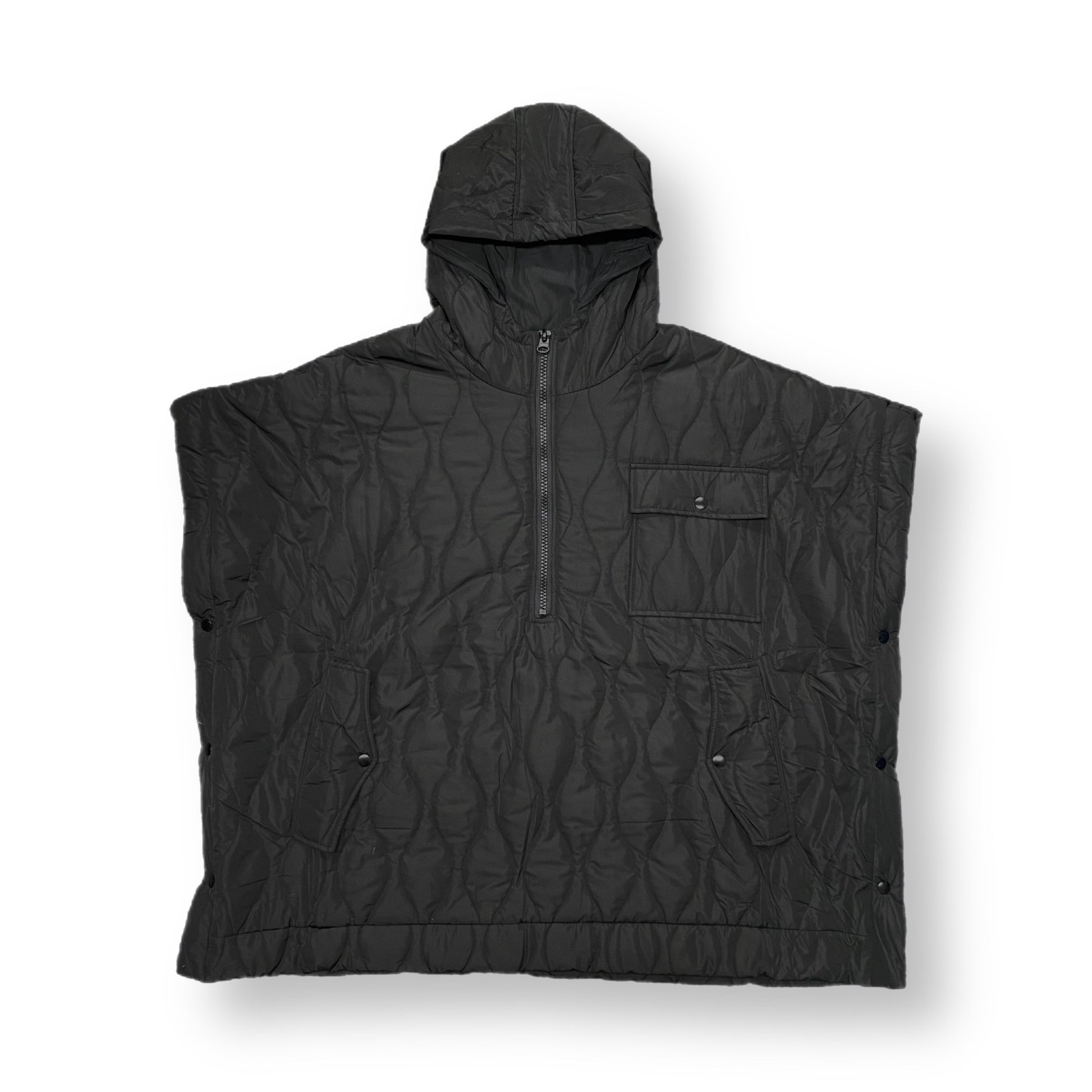 Our Quilted Poncho set features an oversized yet cropped poncho paired with quilted loose fit pants. Both pieces have snap on buttons, perfect to layer or flare out.